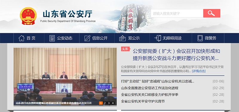1、考生可搜索“山东省公安厅”,登录山东省公安厅官网,如下图。网址为:http://gat.shandong.gov.cn/